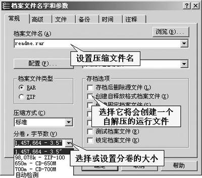 分卷可将压缩文件切割成你所指定的大小的多个文件。当压缩文件比较大时可用分卷方式,如想用软盘来携带压缩文件,而压缩文件大于软盘的容量时,可将文件切割成1.44MB大小的多个文件,分卷中提供了五种选择,可根据需要选择。也可自己指定分卷的大小,如填入“5,000,000”(单位是字节),多数免费邮箱只允许不超过5MB的附件,这样可将大的文件切割成小于5MB的分卷再用多个邮件发送它。