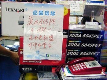美达的一款支持800MHzFSB的865PE主板价格为888元。乍一看价格,也不觉得有什么突出的表现。可买此款主板居然还可免费获得利盟的彩色打印机,可以说非常划算了。