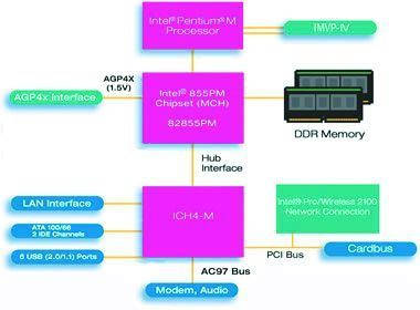 目前,855GM主要用在低端的产品中,而855PM主要用在中高端产品中(见图2)。855GM的功率跟855PM加上ATI M9差不多,但是性能相差很多,855GM内建显卡甚至比不上ATI M6,采用集成的主板相对来说成本较低,设计也简单一些,这也是万元迅驰清一色采用855GM的主要原因。目前的855系列只提供DDR200/266内存支持,在为Dothan配套的Intel 855PME和Intel 855GME上有望得到突破。