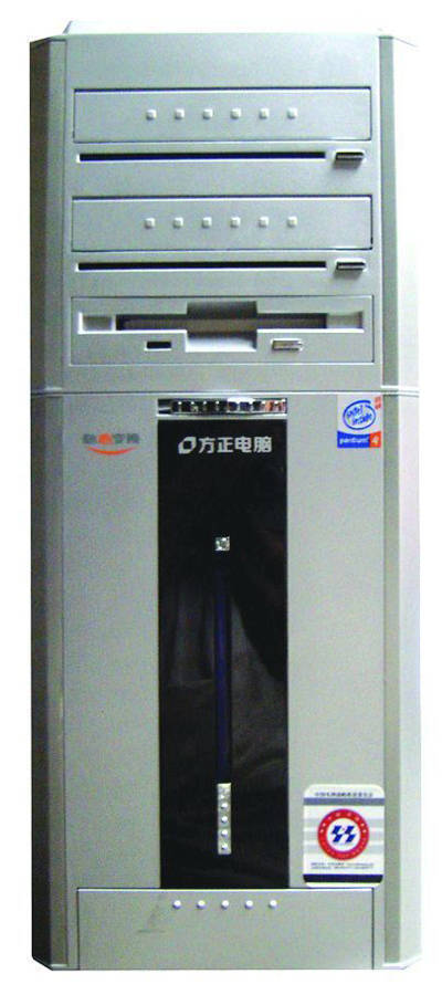 方正影音王8500HT电脑采用银白色的外壳,机箱整体设计风格以大方、稳重为主(图1)。