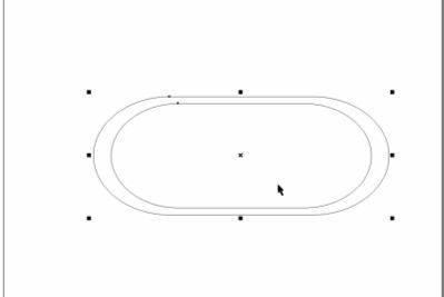 1.用矩形工具绘制一个长方形,选中画好的矩形做圆角处理,在属性栏中输入数值100,按回车。再用鼠标点击四角任意一个方黑点,同时按住Shift键向中心收缩,收缩到适当位置后迅速松开左键点击右键,这样就同心复制出一个相同的圆角矩形(图1)。
