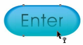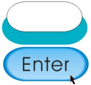4.现在一个按钮的基本雏形已经出现了,可是一点也不像琥珀呀!别急!还记得琥珀是什么样子吗?没错!是透明的,我们马上要做的就是要按钮透明起来。对了,按钮上是有文字的,所以先输入文字“Enter”放在按钮中间。然后给我们刚才放在一边的两个圆角矩形填充颜色:大矩形c60 y20去轮廓、小矩形填充白色(图4)。