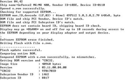阿King提示:为了防止意外事件再次发生,不要使用和你的AGP显卡相同芯片的PCI显卡来修复,因为刷新程序有可能识别错误,造成不必要的麻烦!