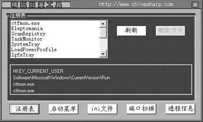 利用该组件(图2)可以从注册表、启动菜单、ini文件、网络端口、系统进程等方面分析、监测系统。一旦发现木马,立刻可以通过它方便地加以清除。