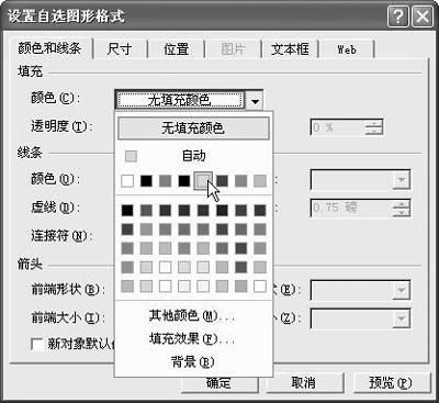 3)然后在其他幻灯片制作动作按钮并进行相应设置,便可实现幻灯片的交互播放。同时,如果想更改按钮的颜色,可双击按钮图标打开“设置自选图形格式”窗口,选择“颜色和线条”标签便可进行颜色设置。