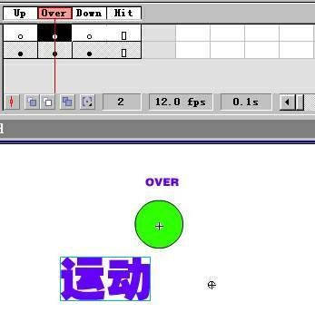 最后存盘测试一下效果,看到的效果就是按钮和Movie Clip结合的产物。当然,我们还可以在“Up”上加上一个新的“Movie Clip”,这样效果更佳!