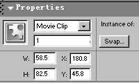 选择Movie为当前层,打开图库,将组件1拖至场景中生成一个组件1的实例,然后在组件1的实例上单击鼠标右键并选择属性(Properties))进行属性编辑,在符号“1”的属性面板中,给实例命名为“1”(图11),然后利用相同方法对2~9组件进行创建操作。