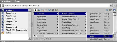 由于在影片初始的时候要使每个MovieClip处于静止状态,因此可选择Control为当前层,双击第1关键帧并加入下列代码: