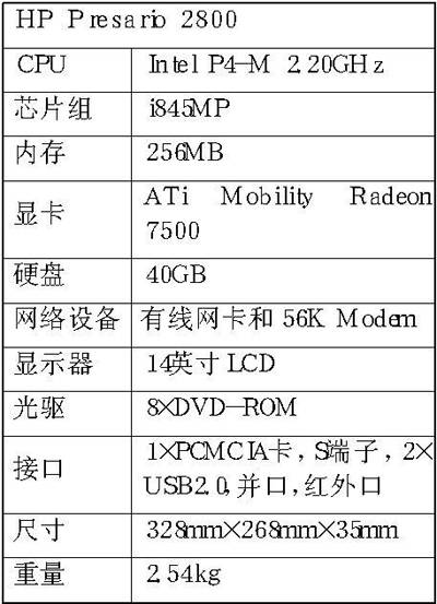 惠普公司与康柏合并后,康柏以前的笔记本电脑Presario(自由人)系列被保留了下来。自由人是面向个人用户的系列,因此Presario 2800采用的是Intel Pentium 4-M 2.2GHz处理器,并配备了256MB DDR内存。显示芯片为带有64MB显存的ATi Radeon Mobility 7500(又被称为Radeon M7),是Radeon Mobility 9000的前一代产品。