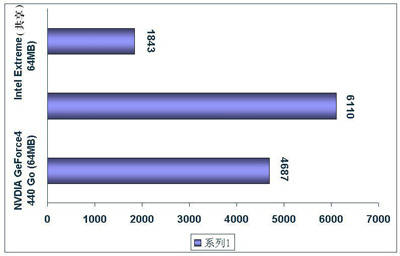 下图比较了ATi Mobility Radeon 9000、NVDIA GeForce4 440 Go (64MB)Intel Extreme(共享64MB)三种显卡的3D Mark 2001的得分。用户可以根据自己的实际情况选购相应的笔记本电脑。