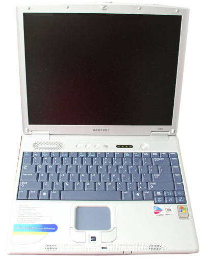 三星X05是三星X10迅驰笔记本电脑的后继产品,它与X10的配置差不多,这次评测所用机型配备了康宝光驱,所以比X10略厚一些。X05重量只有2.0千克。它采用Intel迅驰1.4GHz处理器,配有256MB DDR内存,最大可扩充至1GB;硬盘是38GB;14.1英寸超薄液晶显示器,支持1024×768分辨率;Intel855GM主板,集成显卡;内置56K Modem、10Mbps/100Mbps自适应网卡,集成无线网络模块;配有两个USB2.0接口、一个IEEE1394接口、一个PCMCIA插槽。