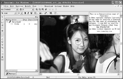 不过遗憾的是Panoramic不支持同时打开多个文档,在打开新文档的同时会自动关闭旧的文档。另外,如果你使用的是演示版本的话,在文件窗口中将显示一个版本提示对话框,注册后就不会再出现了。