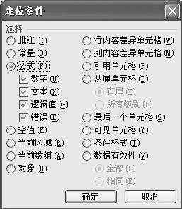 ②执行“编辑→定位”命令(或者按“Ctrl+G”组合键),打开“定位”对话框,单击“定位条件”按钮,打开“定位条件”对话框(图2),选中“公式”选项,点“确定”返回,即可选中工作表中所有包含公式的单元格。