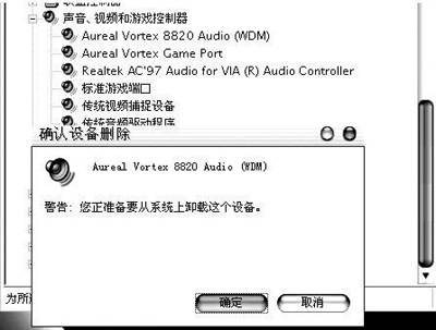 安装过程:首先在设备管理器里面删除Aureal vortex PCI adapter,然后再删除Windows自带的WDM驱动文件,过程及所删除文件同S90相同。