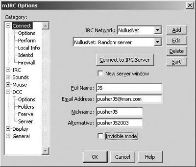 发布英文电子书的IRC服务器是NullusNet,连接该频道后,在mIRC Channels Folder窗口中输入要进入的频道名。不同类型的书籍在下列不同的频道发布。