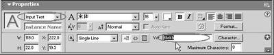 解说:动态文本框是用来显示文本标签数据的,和文本标签不同的是,它需要设定一个变量,用来在以后设置动作时调用这个变量而显示相应数值。