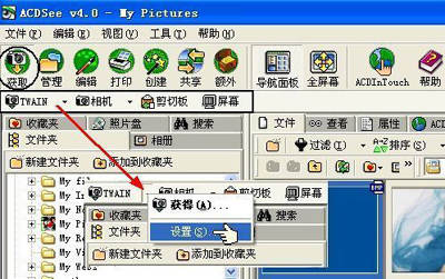 ②在弹出的ACDSee 4.0主界面中单击“获取”按钮,随后弹出一个“获取工具栏”。