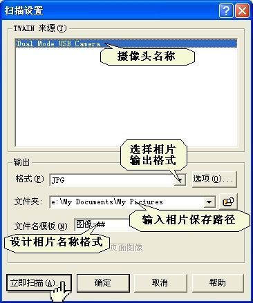 豆仔提示:一般摄像头在程序中都被默认为扫描仪。因此,当我们把扫描仪和摄像头一起连接到电脑中时,它们会同时出现在扫描设置窗口中。