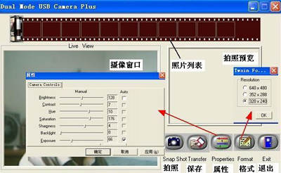 ⑥点击“格式”按钮,可以设定所拍照片的大小,选择后单击“OK”返回上一级界面。