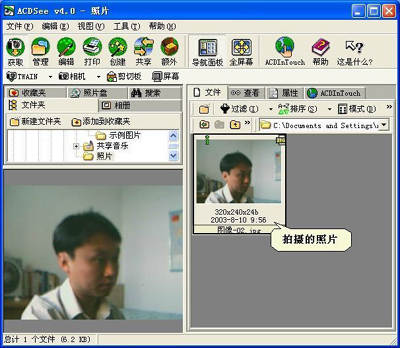 用摄像头进行拍照是摄像头最常用的功能之一,但是用摄像头拍照需要借助一个图像处理软件来进行。下面我们以“ACDSee 4.0”看图工具为例来了解一下具体的拍照过程。