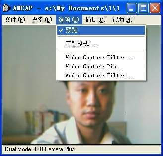 ①启动“Amcap”视频录制工具,单击 “选项→预览”命令,即可在“Amcap”窗口中对视频进行预览。