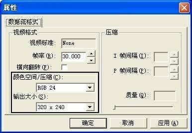 ④点击“选项→Video Capture Pin”,将“颜色空间/压缩”项设置为“REG24”,以使视频画质及传输达到最佳效果,在“输出大小”选项中设置视频尺寸。