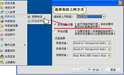 ③选择“系统自动设置”项,系统会根据我们的上网方式自动对摄像头进行设置。