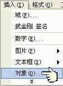 ①首先将光标移动到需要插入分数的位置,随后单击插入菜单,选择“对象”命令。