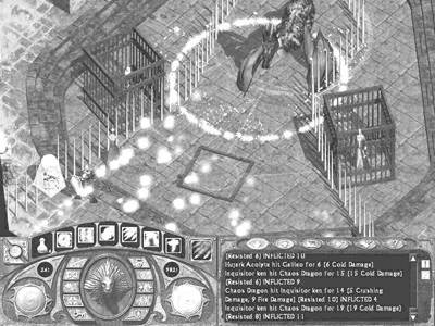 任务2:找伽利略制造一根权杖。进入宗教裁判所的地下室,在有审判官和守卫的房间内的一口箱子里得到“地下室里的权杖”(Scepter of the Chambers),这个东西可以控制地下室里的反魔法陷阱,就是那些蓝色的、会吸取魔法力的十字架。点一下十字架就可以将它们破坏,同时十字架上的能量施放出去变成能量门封闭附近的出口;再点一下十字架的碎片就可以将它们组合起来,当然也就打开了能量门。利用能量门进入地下室的深层──注意路上有很多怪物──在尽头看见被囚禁的伽利略。跟他谈谈制作权杖的事情,他让你去他被封闭的天文台。天文台就是神殿区中间圆形的建筑,门口有卫兵把守。采取说服、潜行的方法都行,进去之后点一下望远镜就可以了。