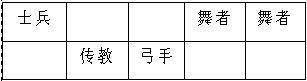 狮子:2舞1传1弓1士兵,而且其中4人的血量在2000左右,从这点上来看,这支队伍无疑是一支血牛队,而且传教和舞的存在使这支队伍的生存能力超级地强。