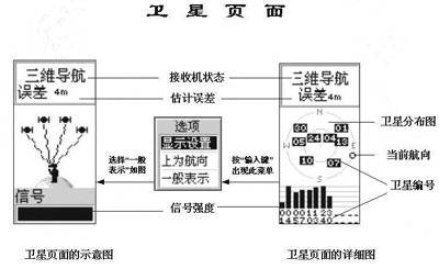 一般GPS设备具有显示当前行进速度和电子罗盘的功能。在输入目的地的坐标后,即可显示当前位置到目的地的距离、速度、方位角等信息,还能够根据运动速度自动计算出到达目的地所需的时间。在罗盘功能界面中间的指针箭头的指向就是你的行进方向,在导航过程中罗盘指针会一直指向目的地。