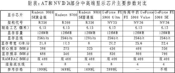 虽然与早先传闻中的GeForce FX 5900 Value技术参数有少许出入,但是毫无疑问,突然杀出的GeForce FX 5900 SE在规格上已经压倒了普通版的Radeon 9800 SE。而这种优势正是来源于256bit的显存位宽。