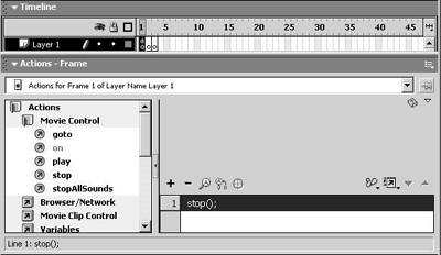 解说:在Flash MX中,添加动作代码有时感觉比较麻烦,需要展开相应动作类目,来选择具体动作。我们可以将需要添加的动作,写入一个文本文件中,然后拷贝到动作列表中。