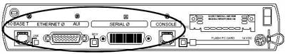 所有路由器都安装了控制台端口,使用户或管理员能够利用终端与路由器进行通信,完成路由器配置。该端口提供了一个EIA/TIA-232异步串行接口,用于在本地对路由器进行配置(首次配置必须通过控制台端口进行)。