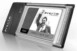 Proxim公司推出的ORiNOCO 11b/g PC无线网卡兼容IEEE 802.11b和IEEE 802.11g标准(图4),适用于笔记本电脑,使用户可方便地在无线网络之间移动,即在家庭、办公室和公共场所之间自由移动。该PC卡有金卡和银卡两种,区别在于WEP加密的位数不同,银卡为128位,而金卡则为152位。