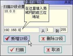 在扫描局域网里的计算机前,我们必须先指定所要扫描计算机的IP段。