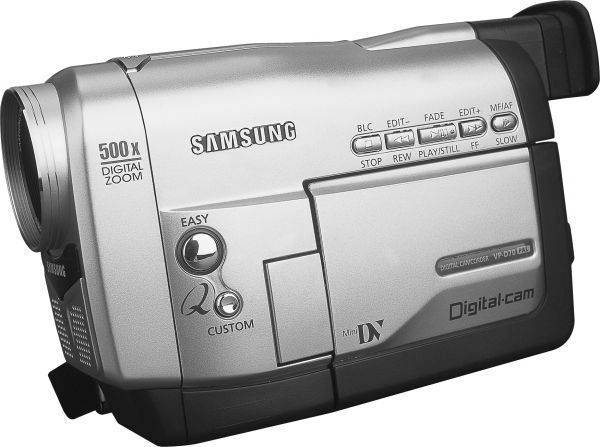 3700元 三星D70i:三星是DV机的后来者。D70i采用1/4英寸CCD,46万的有效像素似乎不在主流之列,但22倍光学变焦还是为其增添了些许魅力,同时也由于其分辨率较低,所以机身并没有内置记忆棒接口。D70i具备2.5英寸液晶屏,全中文操作菜单。按键的位置设定还是比较合理。不过电子取景器仍然是黑白的。