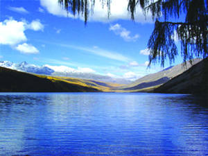 某日,我们一行人来到康定木格措,蓝蓝的天上飘着雪白的云,还有远处的雪山,与木格措交相辉映。