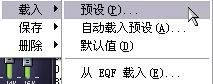 ③均衡器调试得好,能使播放的音乐更加动听悦耳。但不是每个人都熟悉均衡器的调试,Winamp也考虑到了这一点,你可以通过预设按钮来调入已经为你准备好了的调试方案。点击“预设”按钮,再从“载入”到“预设”(图2),便可以选定你要载入的各种方案了。