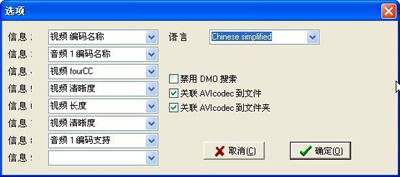 步骤4:如图3所示,AVIcodec的选项设置中可以设置显示的信息类别,也可以选择软件的语言界面。在这里需要注意一点,我们一定要取消AVIcodec默认的“关联AVIcodec到文件”这一选项,因为如果不取消这一选项,AVIcodec会自动成为众多多媒体文件的默认播放器。