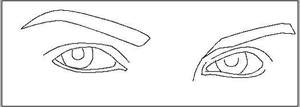 1.新建图层用来打线稿,用钢笔工具画出眼睛和眉毛的形状(如果是半侧面的话,要注意透视关系)如图1。