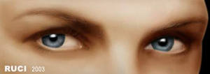 因为这是特写镜头,所以眉毛也不能含糊,用最细的笔刷,顺着眉毛的生长方向来画。眉梢要淡些。还有睫毛,是用涂抹工具慢慢拖出的。另外的一只眼睛也用同样的方法来画。(不过建议你两只眼睛同时来画)