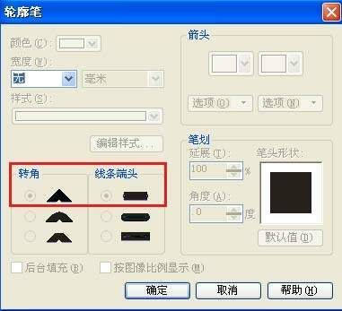 1.使用“轮廓笔”尽量用以下选项组合“转角圆头”配“线条任意端头”;“转角尖头”配“线条外圆凸端头或平端头”(图2)。