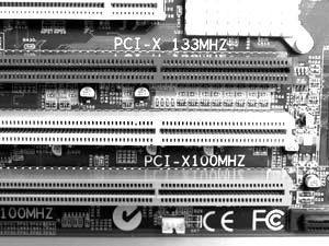 1999年由IBM、Compaq和HP联合推出了PCI-X这个新的总线标准,如图8就是主板上的PCI-X插槽,它是在PCI基础上发展起来的,PCI-X总线是一种可扩展的总线架构,采用了32位或64位接口,工作频率可以达到133MHz,因此可以提供高达1066MB/s的带宽。2002年5月,PCI-X 2.0标准发布,最大带宽提高到了4.2GB/s。