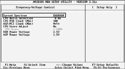 摸摸CPU的温度,还好,温温而已;北桥芯片散热器的温度有点高,但还属正常。我怀疑是超频引起的系统不稳定,重新进入BIOS将外频从133MHz改回100MHz,但情况仍然没得到改善。