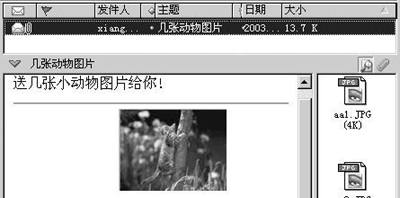 用Outlook Express收取含有图片附件的邮件,总是在邮件内容之后直接把图片显示出来。现在Foxmail 5.0同样也可以实现该功能了。在“账户属性”对话框的“字体与显示”中选择“使用嵌入式IE浏览器显示HTML邮件”复选框,这样当收到带有图片附件的邮件时,如果图片的格式是BMP、JPG、GIF或者WMF,那么,图片可以嵌入到邮件内容之后显示出来,无须逐个图片打开观看。即使对方发过来的是文本格式的邮件,也只需单击邮件内容右上方的放大镜图标按钮即可查看(图4)。