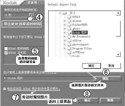 ④~⑧对传送照片的延时、照片保存路径、存储设备、传送过程中照片预览等项进行设置,保存并返回上一级界面。