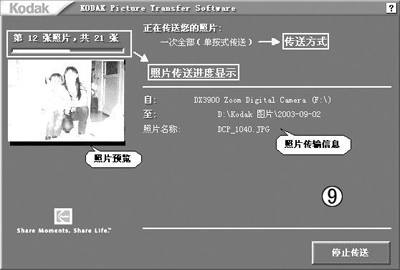 ⑨单击“传送”就可以将数码相机中的照片传送到指定的文件夹。