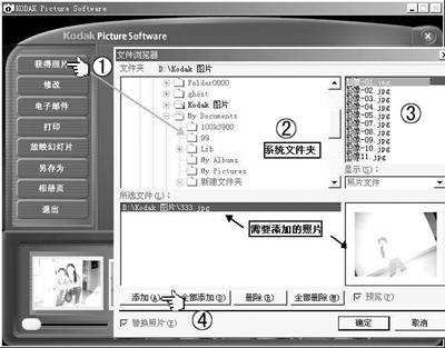 在用KODAK picture software软件处理导入的照片的同时我们可以导入计算机中的其他照片。