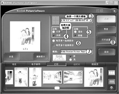 数码照片最常用的处理就是打印了,KODAK picture Transfer提供了非常强大的照片打印功能,还提供了在线打印功能。
